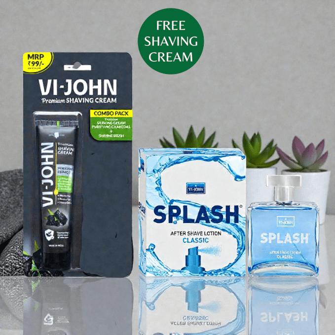 VI JOHN Classic Splash After Shave Lotion 50ml with Premium Shaving Cream 25g Combo Pack